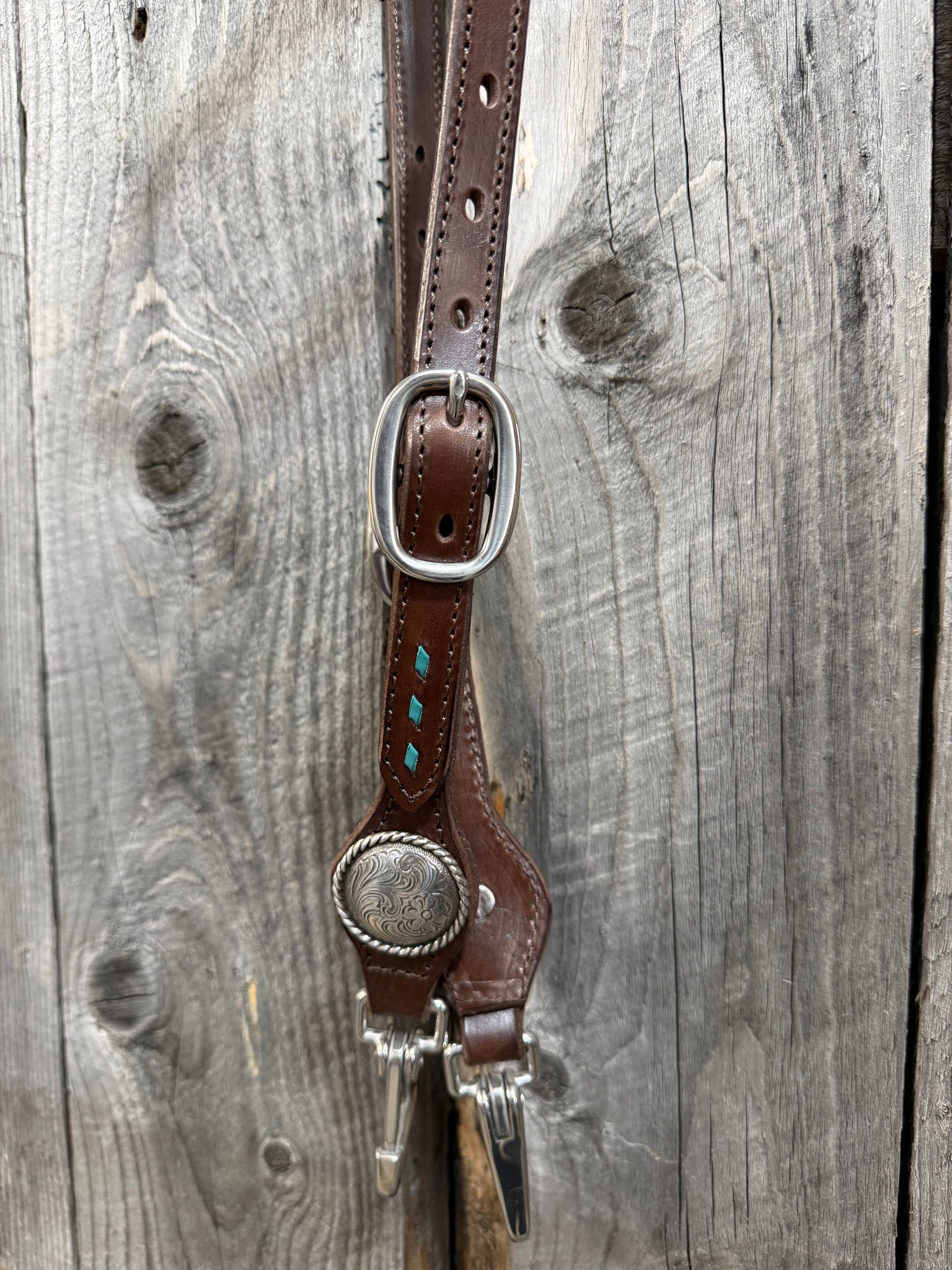 Quick change short cheek bridles with two buckles. Each one features some buckstitch, quick change stainless steel snaps and two buckles